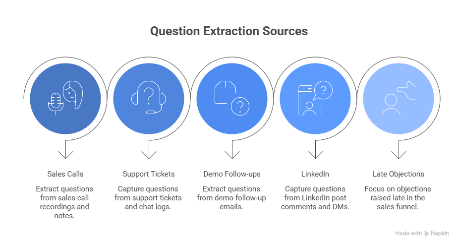 Step 1: Mine real questions from buyer-facing touchpoints