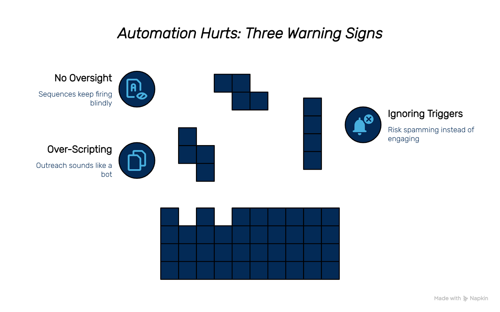 Pure automation runs blind. Without human oversight, sequences keep firing after a reply or miss the nuance of a prospect’s objection. That’s when trust breaks down.