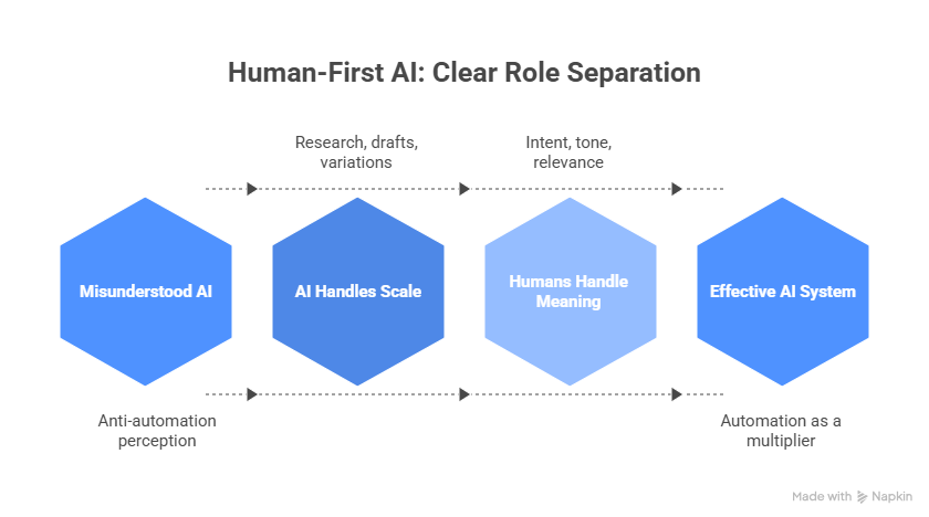 Human-first AI is often misunderstood as being anti-automation. In reality, it is about clear role separation.